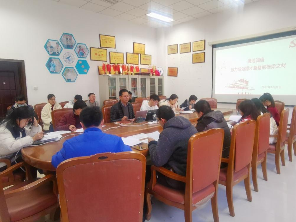 党委副书记万海东讲授了“廉洁诚信——努力成为德才兼备的栋梁之材”主题党课。学院党委组织员李霞、辅导员高云和全体学生党支部书记参加了本次廉洁诚信教育主题党课。