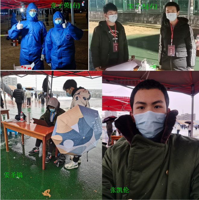 本科2020级多名学生挺身而出,担任了核酸检测工作志愿者,负责核酸检测师生健康码、身份证、一卡通的核对以及后台数据的处理等工作。尽管天气寒冷,防护服的束缚与长时间站立让志愿者们有些疲惫,但志愿者们毫无怨言。金沙娱乐城
