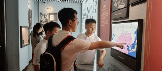 随后,实践队员们步入中共一大会址纪念馆内部,追随《伟大的开端——中国共产党创建历史陈列》脚步,相继参观了“前仆后继,救亡图存”、“民众觉醒,主义抉择”、“早期组织,星火初燃”、“开天辟地,日出东方”等7个展区,深入了解了中国共产党的发展历程、党的初心和使命以及中国共产党在中国革命和建设事业中的伟大贡献,真切感受到了革命先驱们争取民族独立、人民解放和国家富强所做出的艰苦努力。走在纪念馆的展厅里,13位一大代表铜像、72个版本的《共产党宣言》、1:1实景复原的中共一大会址场景,都在讲述着开天辟地、可歌可泣的建党历史,让实践队员们在所看所听所感中真正理解中国共产党为什么“能”、马克思主义为什么“行”、中国特色社会主义为什么“好”。