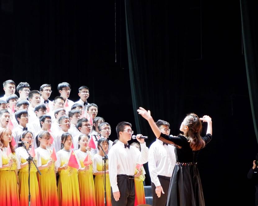 百余名师生共同参与了此次合唱比赛。在本次比赛中,学院师生共同演唱了《映山红》和《我和我的祖国》两首红色经典歌曲。《映山红》是电影《闪闪的红星》的插曲,表达了人民对工农红军的一种期盼之情,也表达了我们对红军的敬佩之情,同时《我和我的祖国》也体现了我们的爱国情怀。