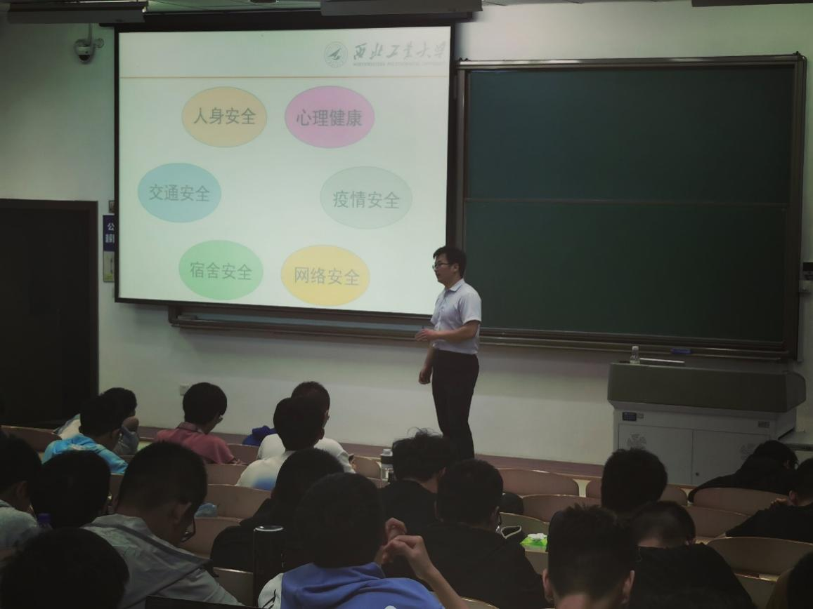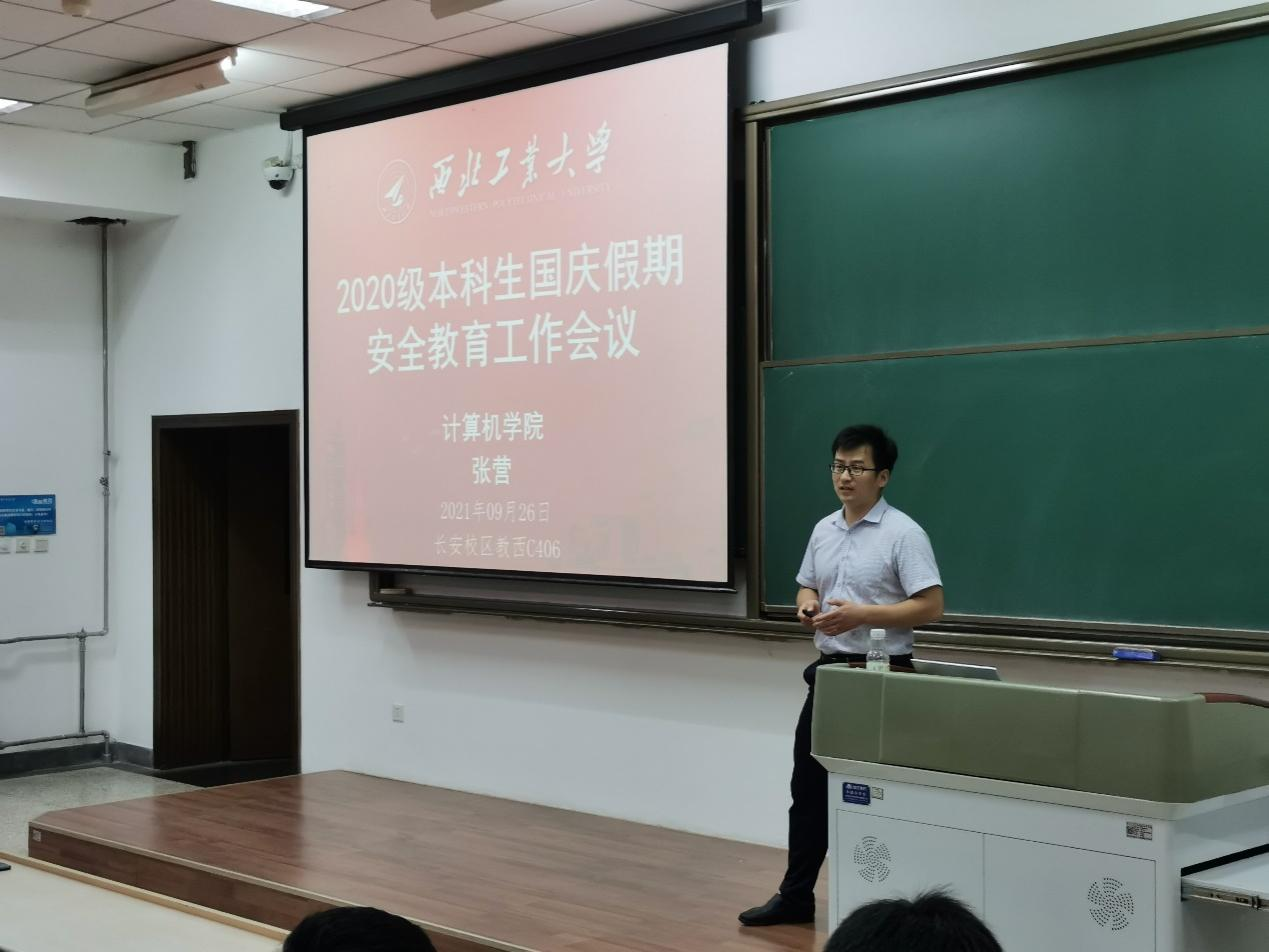 2020级本科生在教学西楼C406召开了国庆假期安全教育专题班会。辅导员张营从人身安全、交通安全、宿舍安全、网络安全、疫情防控和心理健康等六个方面,结合具体而生动的实例阐述了假期安全工作的重要性,并督促同学们做好假期安全工作,同时叮嘱同学们安全无小事,大家务必时刻保持安全意识。