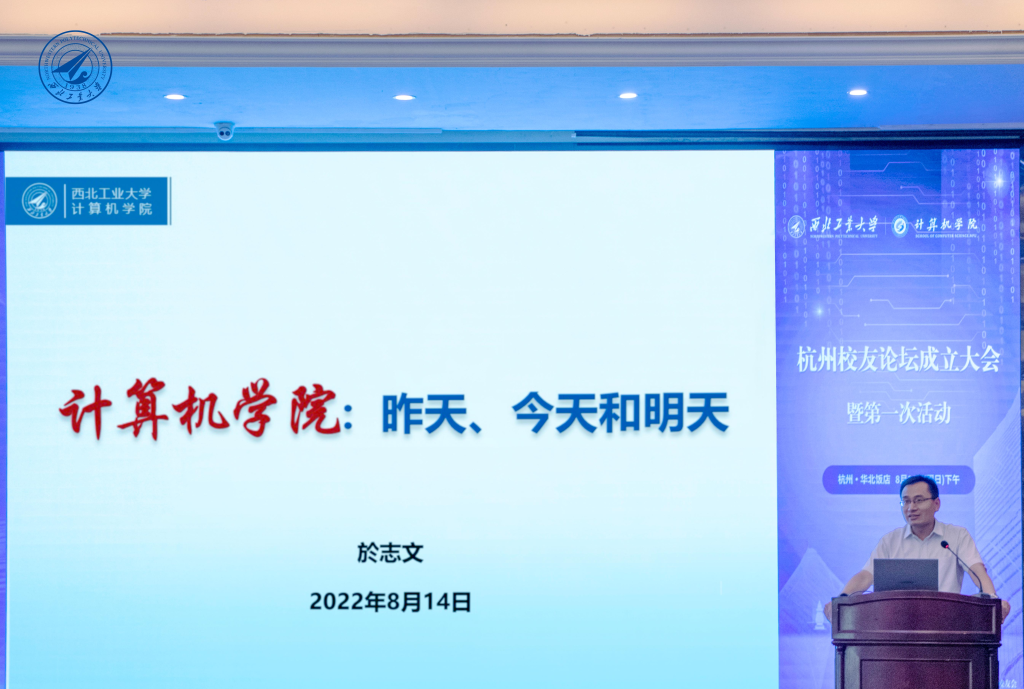 院长於志文代表学院发表了祝辞,希望杭州院友论坛秉承“联接、共享、特色、质量”理念,联结不同年龄、从事不同行业的计算机相关专业校友,一起做大事,以互联网思维打造校友平等交流的平台,共享信息、共享资源、分享知识和最新技术,共同发展,将杭州校友论坛打造成为有特色高质量的论坛。