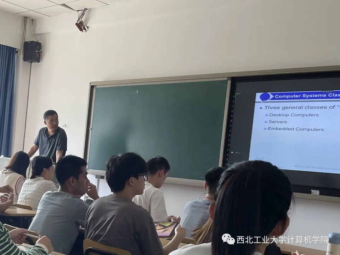 在教学中,王老师持续关注计算机硬件领域的前沿科技,还一直坚持学习最新的教学方法和教学理念。他深知专业知识的学习不是一成不变的,也一定不是枯燥乏味的。他始终坚定不渝地探索如何深入浅出地将日常生活中的实例与相关知识点进行类比,从初学者的角度与学生探讨知识点,尽可能使学生轻松理解课程中的抽象概念,帮助学生对知识进行分类总结,带领学生分组归纳梳理,教学生如何将书由厚变薄,提高学生的知识量和理解力。外校教师在听完王老师的课后表示:王老师对相关内容烂熟于心,知识运用娴熟,讲解CPU控制模型时,详细介绍了Verilog实现的方法和注意事项,为学生具体进行CPU设计实验打下坚实的基础;在介绍中断时,概念清楚,并结合流水线讲解了中断时机、精确中断、同步中断、异步中断等系列概念;为了让学生能够直观理解可屏蔽中断和不可屏蔽中断的概念,党辉老师将这一概念比喻成孩子在家玩游戏是否要给没带钥匙的老爸开门,学生们在欢乐的课堂气氛中瞬间掌握了这一概念,直呼,王老师的课太接地气儿了!看了N遍也没懂的概念,王老师一说,瞬间就明白了。