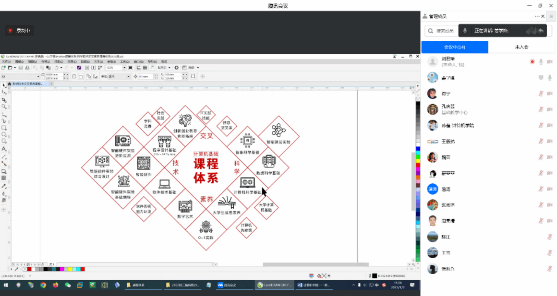 为推进我校计算机基础教学改革进程,计算机基础教学与实验中心于2023年1月3日下午召开了计算机基础教学课程体系研讨会。会议采用线上形式举行,参会人员为计算机基础课程负责人及骨干老师。