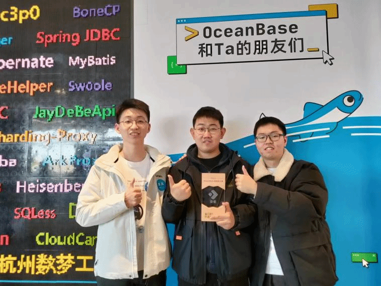 的三位研究生王炳杰、张成林、杨俊琨获得2022 OceanBase数据库大赛亚军。