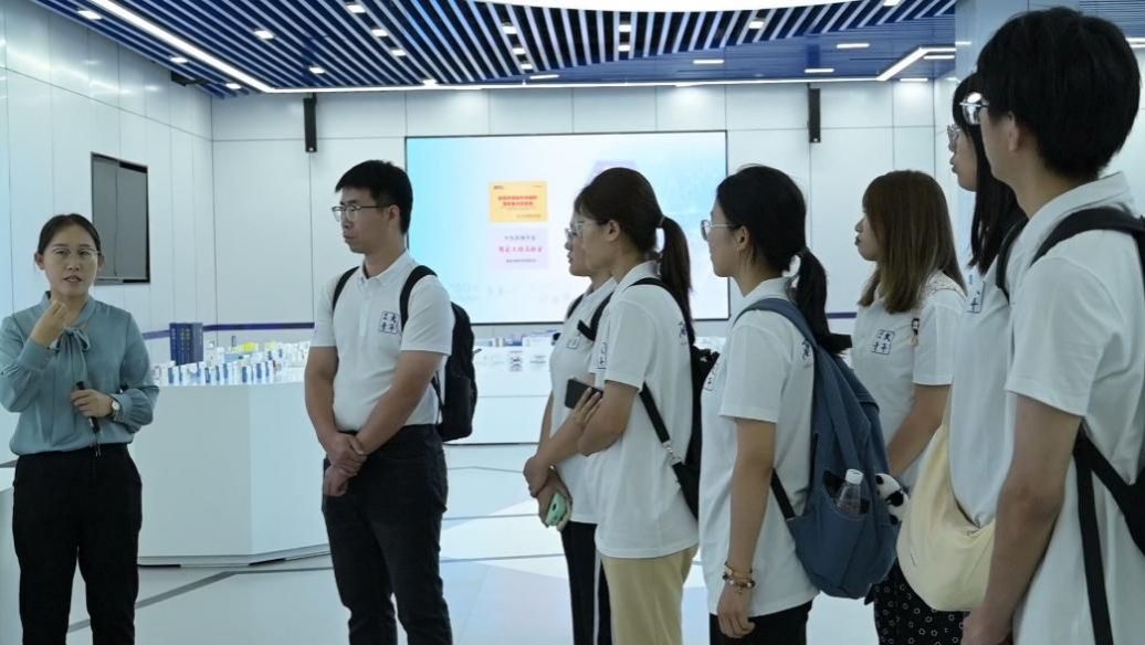 医药园坚持以高标准建设,一大批优质生物医药企业、项目于此落地生根,石家庄市生物医药产业科技创新硕果累累,已形成一条涵盖研发、孵化、产业化、销售及配套服务于一体的全链条产业生态系统。在园区相关负责人的带领下,实践队员们参观了医药园规划展馆。展厅内错落摆放的生物药、高端制剂、生物疫苗等,部分早已投入市场,惠及民生的同时也逐步走向世界,成为中国生物医药产业一张张靓丽的名片。“血液、免疫系统、抗感染这三大领域的药物在以往都要靠进口,而如今已经实现了国产化替代。”负责人介绍道。