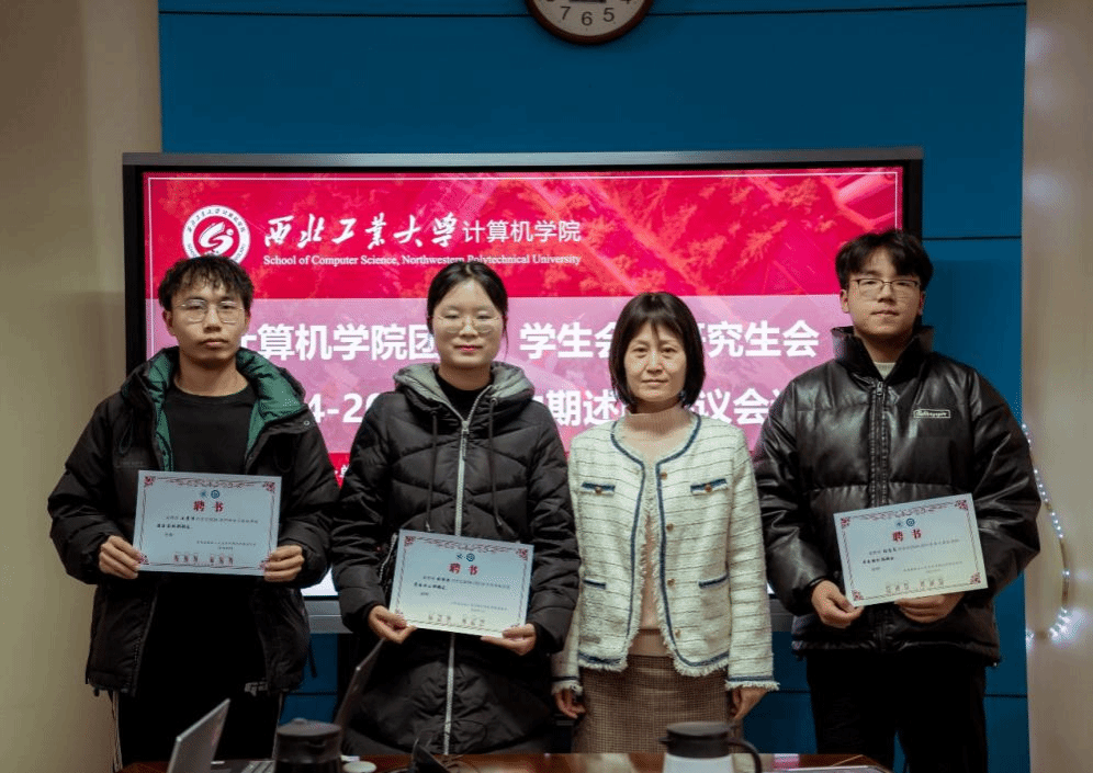 最后,赵媛媛、张成薇为团委,学生会,研究生会学生干部颁发聘书。