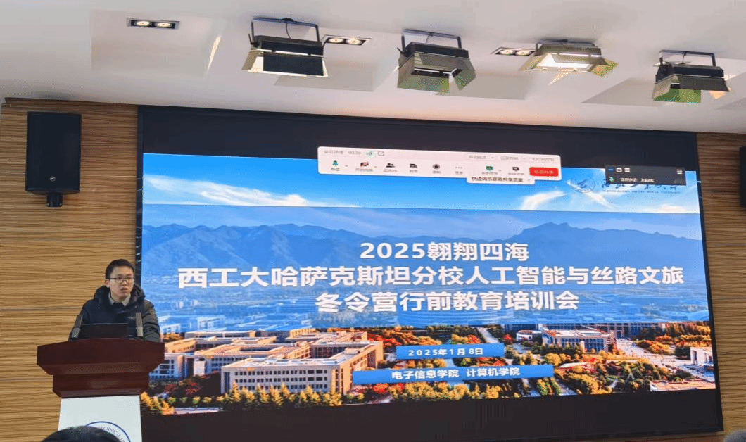 开营仪式后,本次冬令营项目正式开始。活动为期5天,行程紧凑丰富,前三天聚焦于学习人工智能知识的学习,后两天着重领略丝绸之路沿线哈萨克斯坦的独特文化。在哈国大的报告厅内,同学们全神贯注,聆听了哈方多位教授讲授人工智能、超级计算机、大数据模型等前沿领域的专业课程,讲解深入浅出,内容精彩纷呈。除了课堂学习,项目负责人Gulzat Turken老师还带领同学们开展了一系列充实且富有意义的参观活动。在哈分校的研究室,大家近距离观察科研设备与实验流程;科研成果展厅内,哈方前沿的科研成果让同学们大开眼界;校史馆中,丰富的史料与展品诉说着学校的发展历程。每到一处,同学们都认真聆听讲解,详细记录要点,通过这种实地深入学习的方式,对人工智能在智能小车、卫星传感、医疗救助等多个领域的广泛应用有了更为直观的认识。