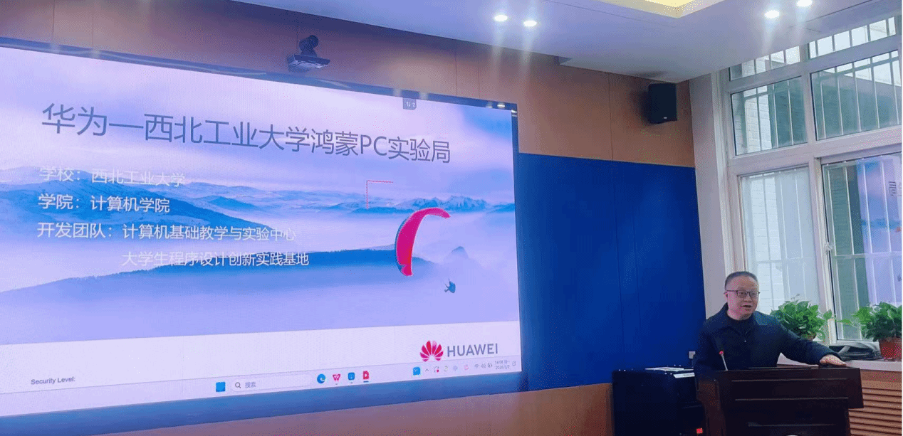 鸿蒙PC实验局作为华为与西北工业大学2024年共同签约成立的合作项目,是西工大发挥国防特色学科优势、探索国产化计算机教学与工业软件研发的关键平台。会上,姜学锋详细介绍了实验局前期建设成果,双方共建了鸿蒙PC教学平台,不仅将鸿蒙技术融入计算机基础、程序设计、软件技术等22门核心课程,还组建了跨航空、自动化、计算机等多学院的鸿蒙PC开发者队伍,从大一阶段开始定向培养鸿蒙人才,打造了从课程教学到实践应用的人才培养闭环。在技术研发与产品落地方面,西工大展现出亮眼的创新成果。