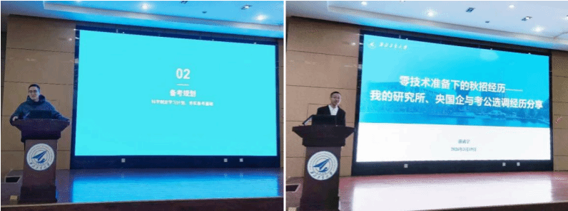李璐池着眼考公备考,制定了从基础夯实到冲刺强化的系统规划,并针对备考过程中的心态调整提出了切实建议,展现了投身公共服务事业的坚定信念。潘成宇深入调研央企、国企及研究所,结合专业背景精准锁定目标单位,制定差异化备考策略,将个人所长锚定国家所需,以实际行动投身强国建设主战场。卫嘉丽结合阿里云实习经历,详细复盘了互联网大厂的求职流程,分享了如何在激烈竞争中展现个人综合素养与岗位匹配度,立志在数字经济主战场上贡献青春力量。
