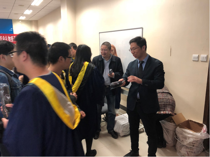 最后,全体2019届硕士毕业生们排队接受两位领导亲手赠予毕业纪念小礼物,两位老师亲切地向每一位学子道以最真诚的祝福,典礼在一片欢声笑语中落下帷幕。终南山下,相伴一程,三生有幸,惟愿学院弦歌不辍,学子前程似锦。
