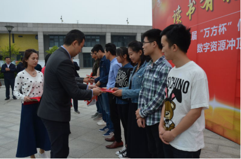 4.23当日中午,在长安校区翱翔学生中心广场举办了信息检索大赛颁奖仪式,图书馆馆长李铁虎、图书馆党总支书记李勇、金沙娱乐城