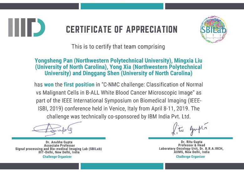 图1. ISBI 2019 C-NMC竞赛获奖证书