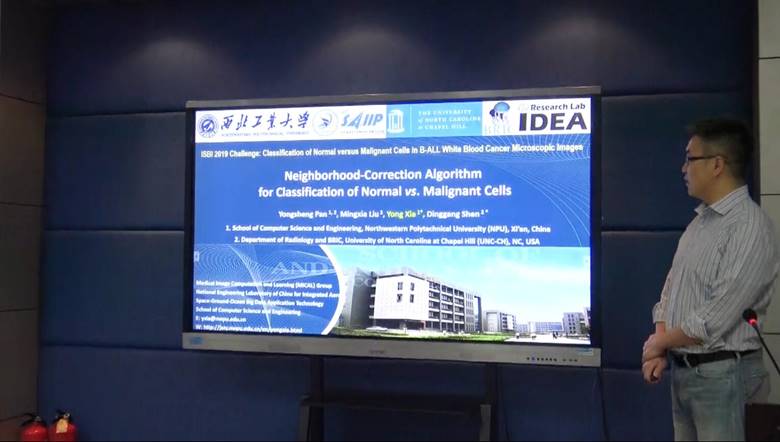 图2.夏勇教授通过视频在ISBI 2019 C-NMC Challenge Workshop上介绍本项研究成果