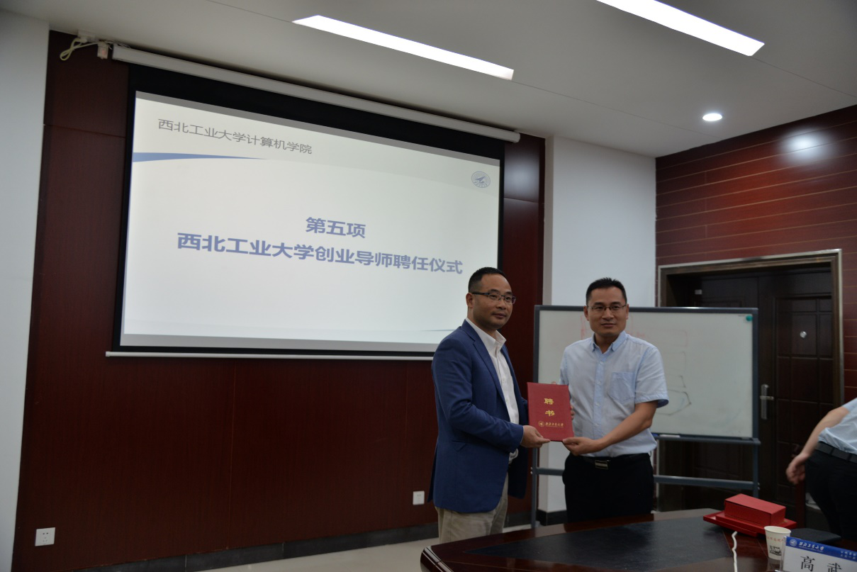 此外,举行了西北工业大学创业导师聘任仪式,学院党委书记於志文为院友郑叶来颁发了聘书。