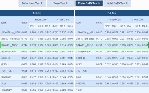 王鹏教授指导的以2017级本科生余济闻、刘骏楠、杨之正、张周阳子、朱奕昕为主力,和低年级研究生苏海波、杨路、矫炳亮组成的队伍,获得东北虎重识别(Plain ReID)任务的第3名,并获邀参加ICCV 2019 CVWC workshop。