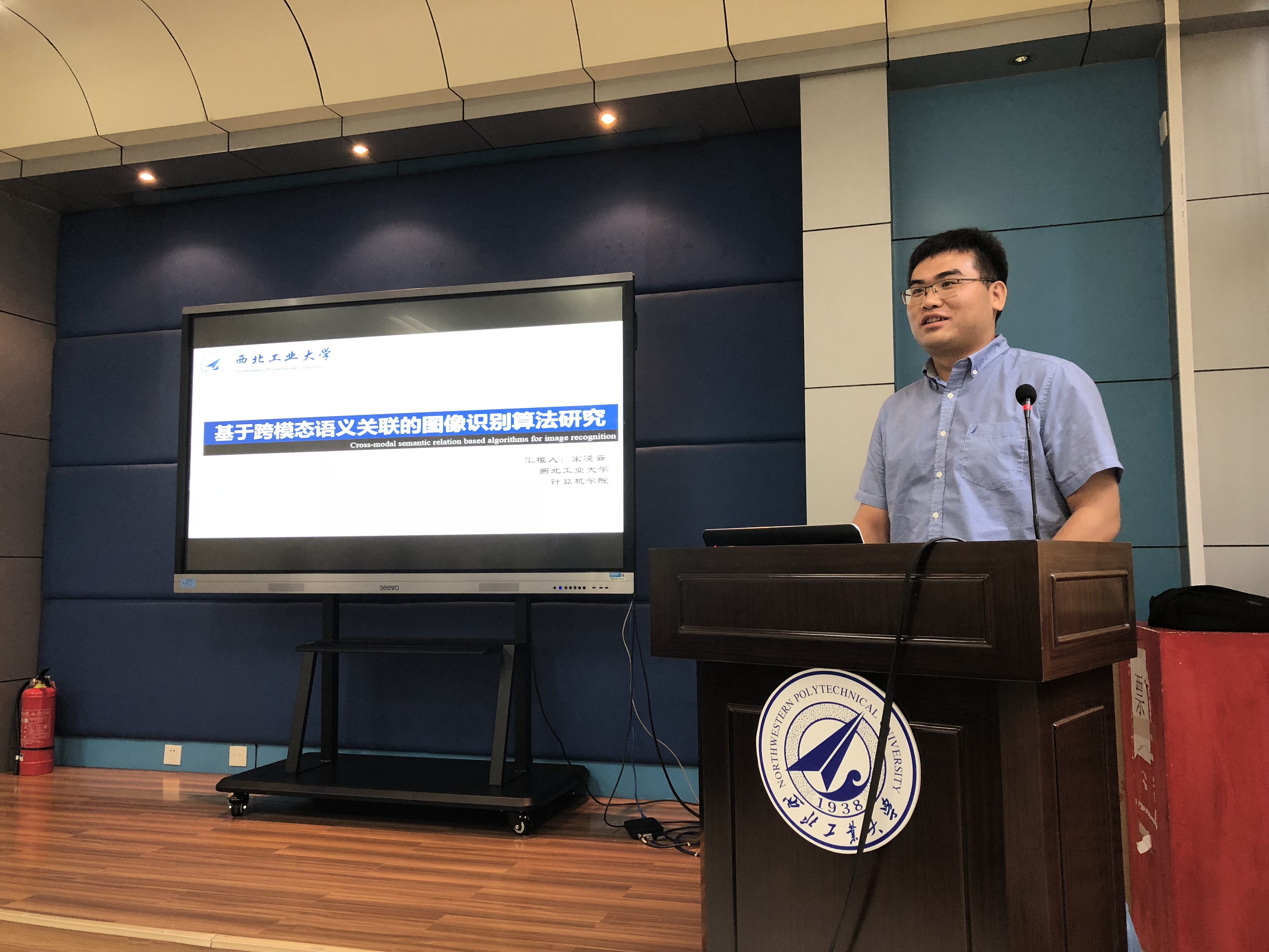 宋凌云老师作为新进教师,分享了“基于跨模态语义关联的图像识别算法研究”的主题报告,介绍在图像数据呈现爆炸性增长且多数图像数据无标注的情况下,如何研发高效、准确的图像内容理解算法,包括图像分类、目标检测和图像文本描述自动生成三个任务。并具体介绍了每一个任务所面临的研究难题,主流解决思路,和个人最近的研究成果。