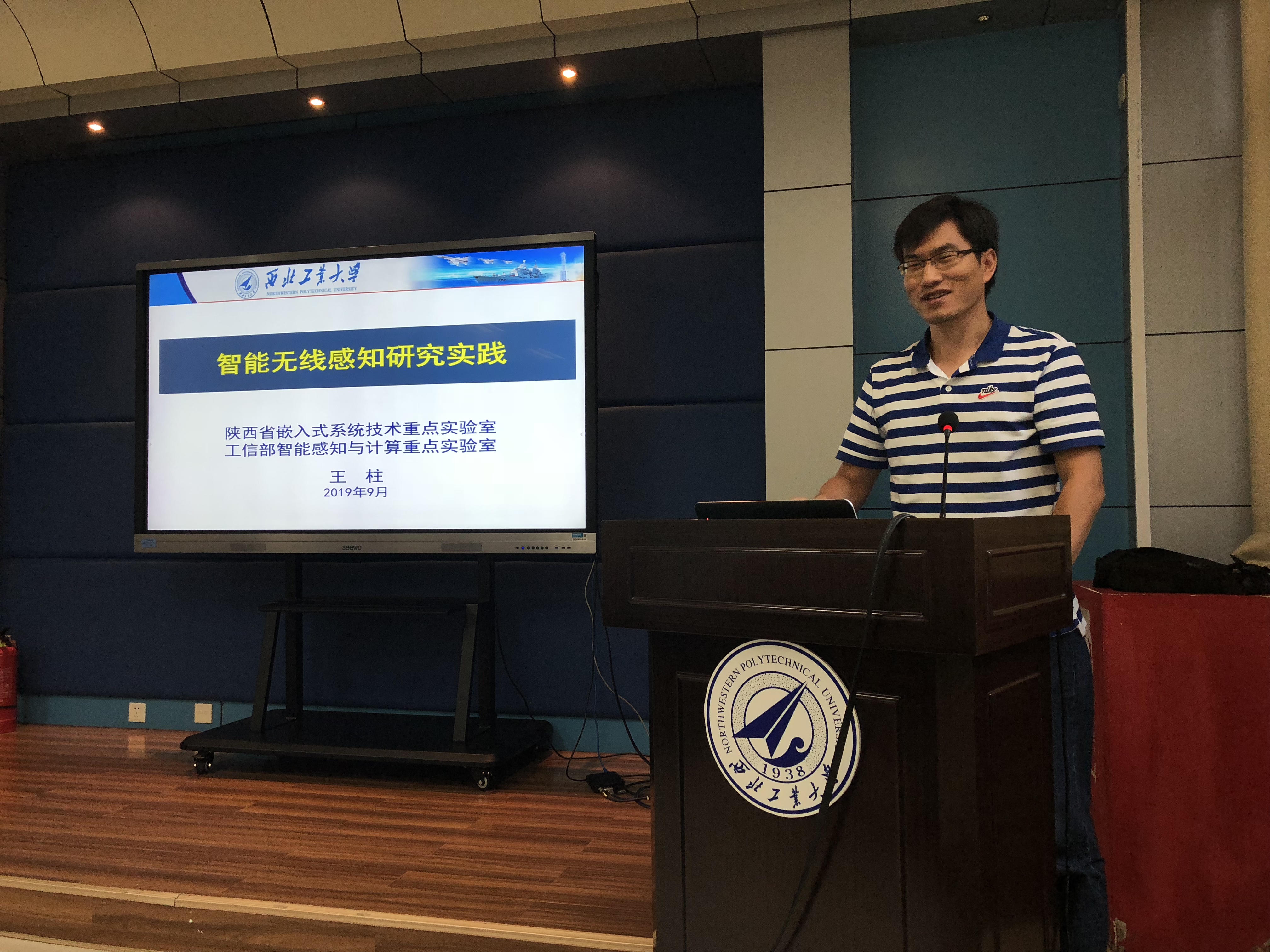 王柱老师的报告题目是“智能无线感知研究实践”,报告结合人类行为感知理解这一科学问题,在构建无线感知理论模型的基础上,尝试从目标感知区域内有没有人(动静检测)、有什么人(身份识别)、在做什么等角度,介绍在智能无线感知方面的研究实践。