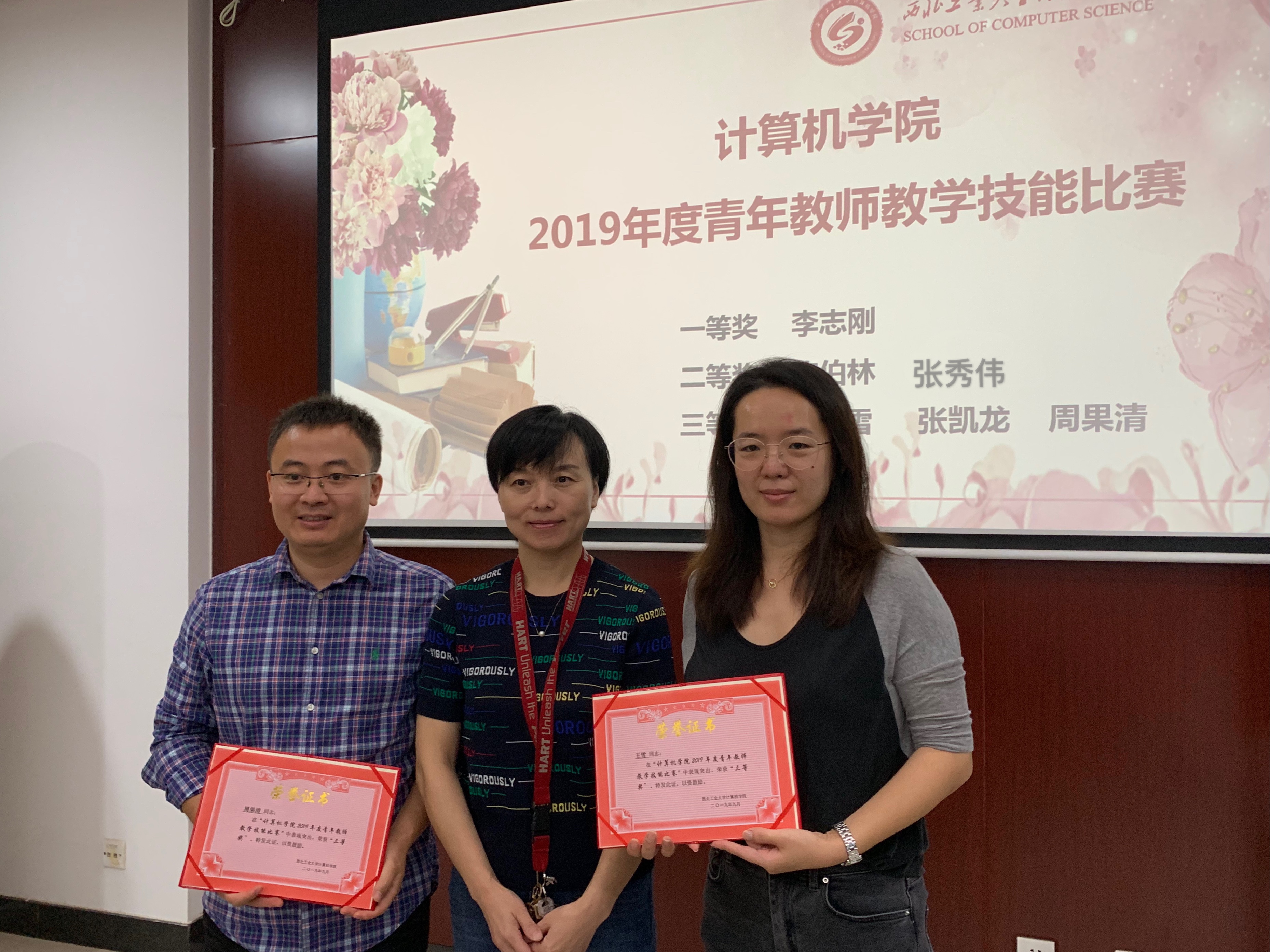 2019年青年教师教学技能比赛结果为一等奖李志刚,二等奖陈伯林、张秀伟,三等奖王雪、张凯龙、周果清。