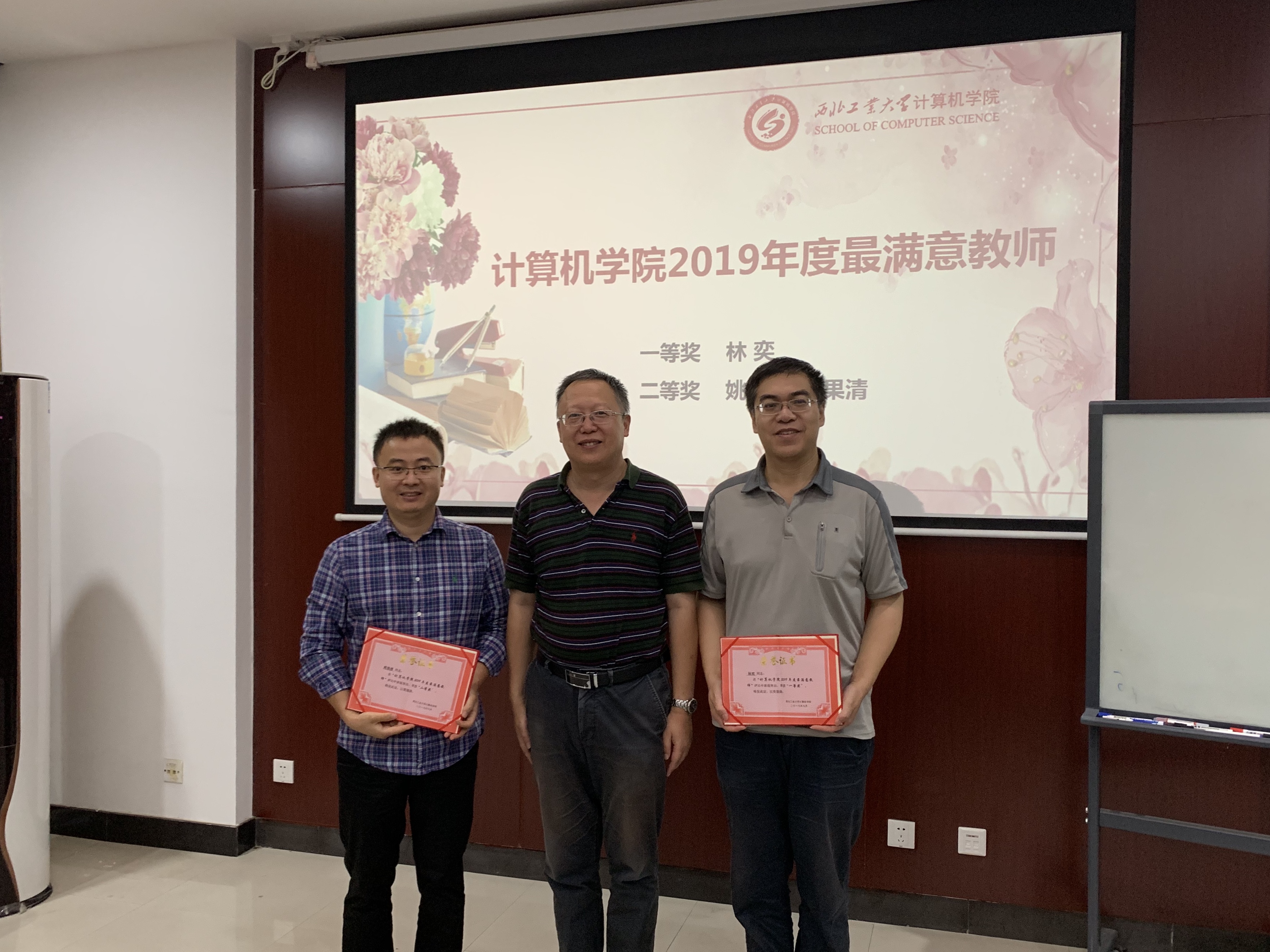 2019年度最满意教师评选结果为一等奖林奕,二等奖姚烨、周果清。