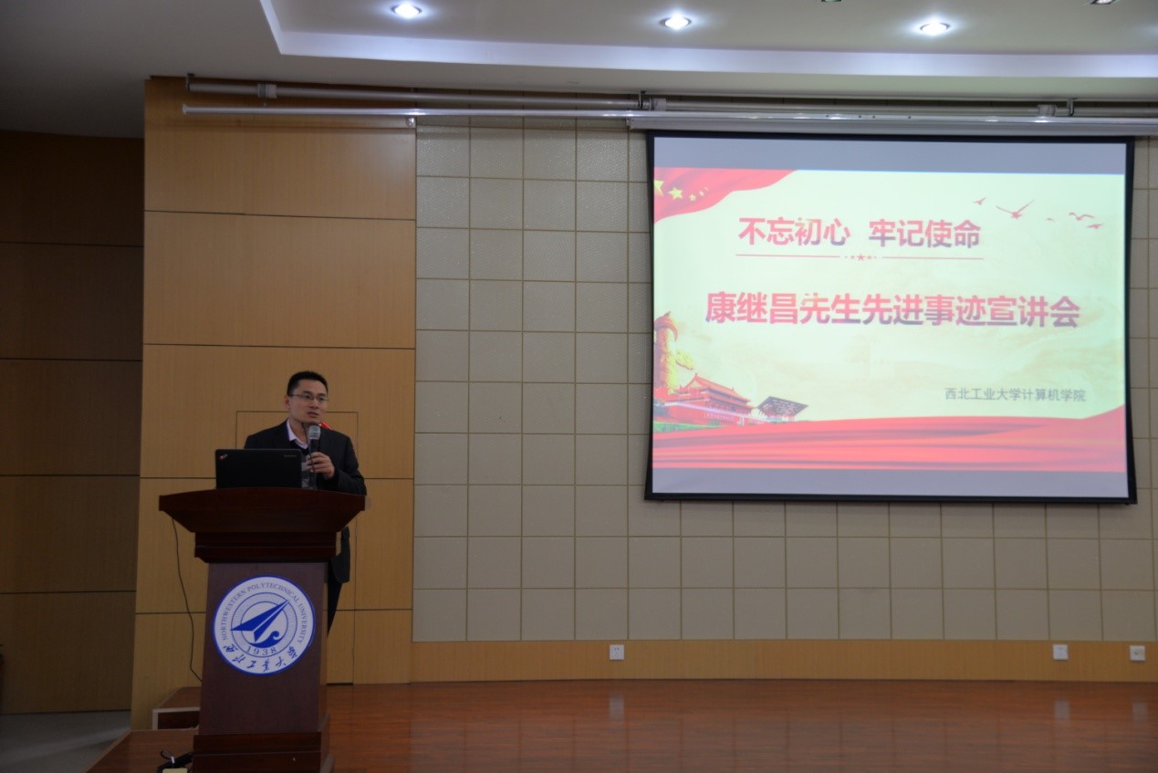 於志文在讲话中提到,此次主题教育的内涵是“守初心、担使命、找差距、抓落实”,要坚守初心不忘本,勇担使命敢作为,找准差距抓落实。今天召开康先生先进事迹宣讲会,用老一辈学科带头人的先进事迹激励大家,希望大家向康先生学习,为祖国的发展贡献自己的力量。於志文向大家宣读了康继昌先生的生平简介,并表示康继昌教育基金会的成立与奖助金的发放,体现了我们立德树人、以学生为根的育人理念,希望将以康先生为代表的老一辈计算机人的精神传承下去。