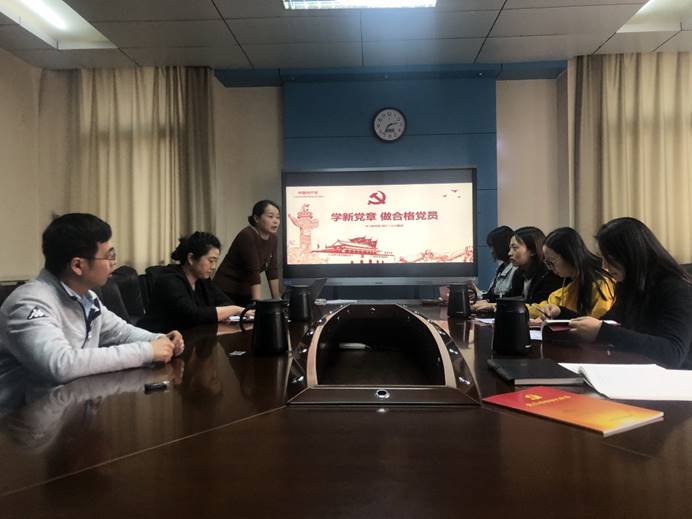 根据会议安排,会前支部组织各位党员针对党章、《关于新形势下党内政治生活的若干准则》(以下简称《准则》)、《中国共产党纪律处分条例》(以下简称《条例》)开展了自学活动。会上,姜红梅重点针对党章,为大家讲了主题为“学习新党章,做合格党员”的党课。强调作为党员,就是要以习近平新时代中国特色社会主义思想为指引,认真学习党章,自觉践行党章,做一名符合党章要求的合格共产党员,忠诚履行好党和人民赋予的使命职责。