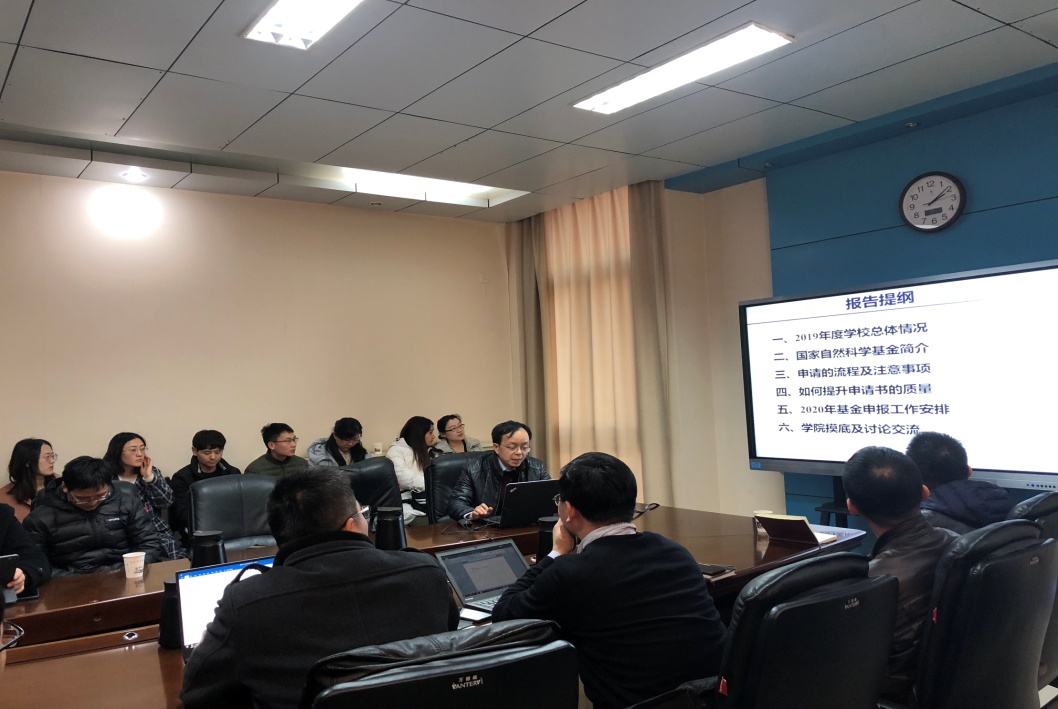 首先邓磊副院长对苏海军部长和基础研究部老师的到来表示欢迎和感谢,并简要介绍了近年来我院申请基金的情况。随后苏海军部长介绍了我校历年来自然基金总体申报和获批情况,结合自然基金深化改革的要点,着重对自然基金的申请流程和注意事项进行了讲解,并从选题、内容、思路和论述等方面就如何提升申请书的质量展开了详细的论述。最后,苏海军向与会教师介绍了学校2020年国家自然基金申报的总体工作安排部署,希望学院能进一步强化组织,积极申报。教师代表也就自然基金申请过程中的问题和苏海军部长进行了深入的交流和讨论。