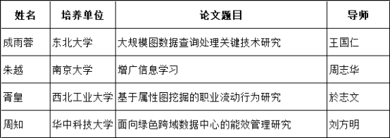 附1:2019年“CCF优秀博士学位论文奖”名单