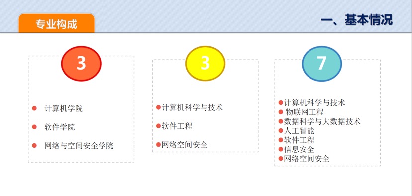 西北工业大学2020年在招生中打破学院和专业之间的壁垒,实施大类招生及大类培养,将招收的56个专业划分为航空航天类、海洋工程与技术类、材料类、智能制造类、能源动力类、信息类、管理类、理学类及哲学社会科学类9个大类。信息类包括电子信息类、自动化类、计算机类。计算机类涉及“计算机科学与技术”、“软件工程”、“网络空间安全”3个一级学科,计算机科学与技术、物联网工程、数据科学与大数据技术、人工智能、软件工程、信息安全、网络空间安全7个专业,依托优势资源,服务国家信息领域重大需求,培养德智体美劳全面发展,具有国际化视野、掌握信息多学科知识,在计算机专业领域引领未来发展的领军人才。